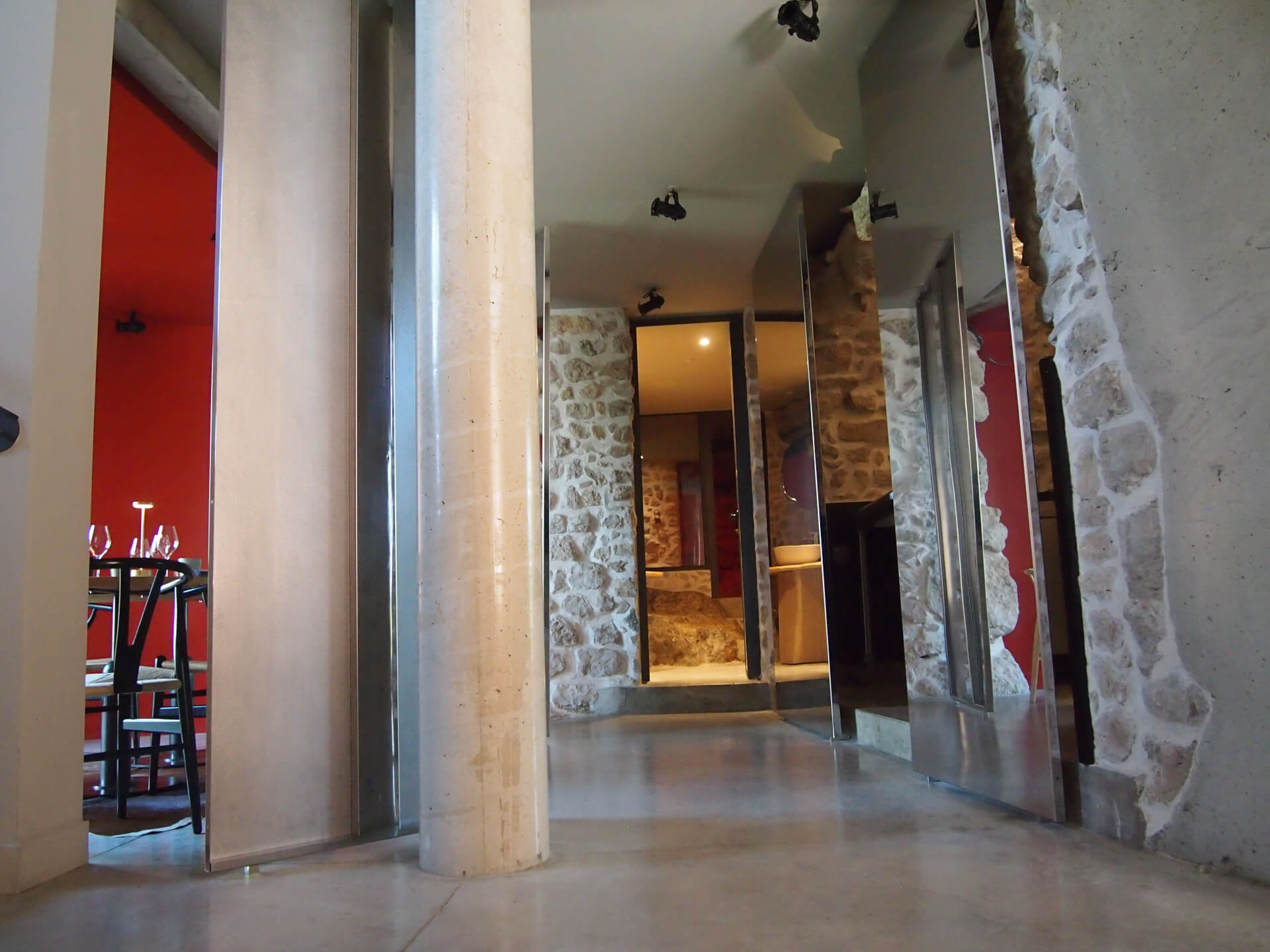 Murs en pierres naturelles, boiseries, miroirs, mobiliers et décors épurés, lumières douces et tamisées lui confèrent une atmosphère chaleureuse et calme.