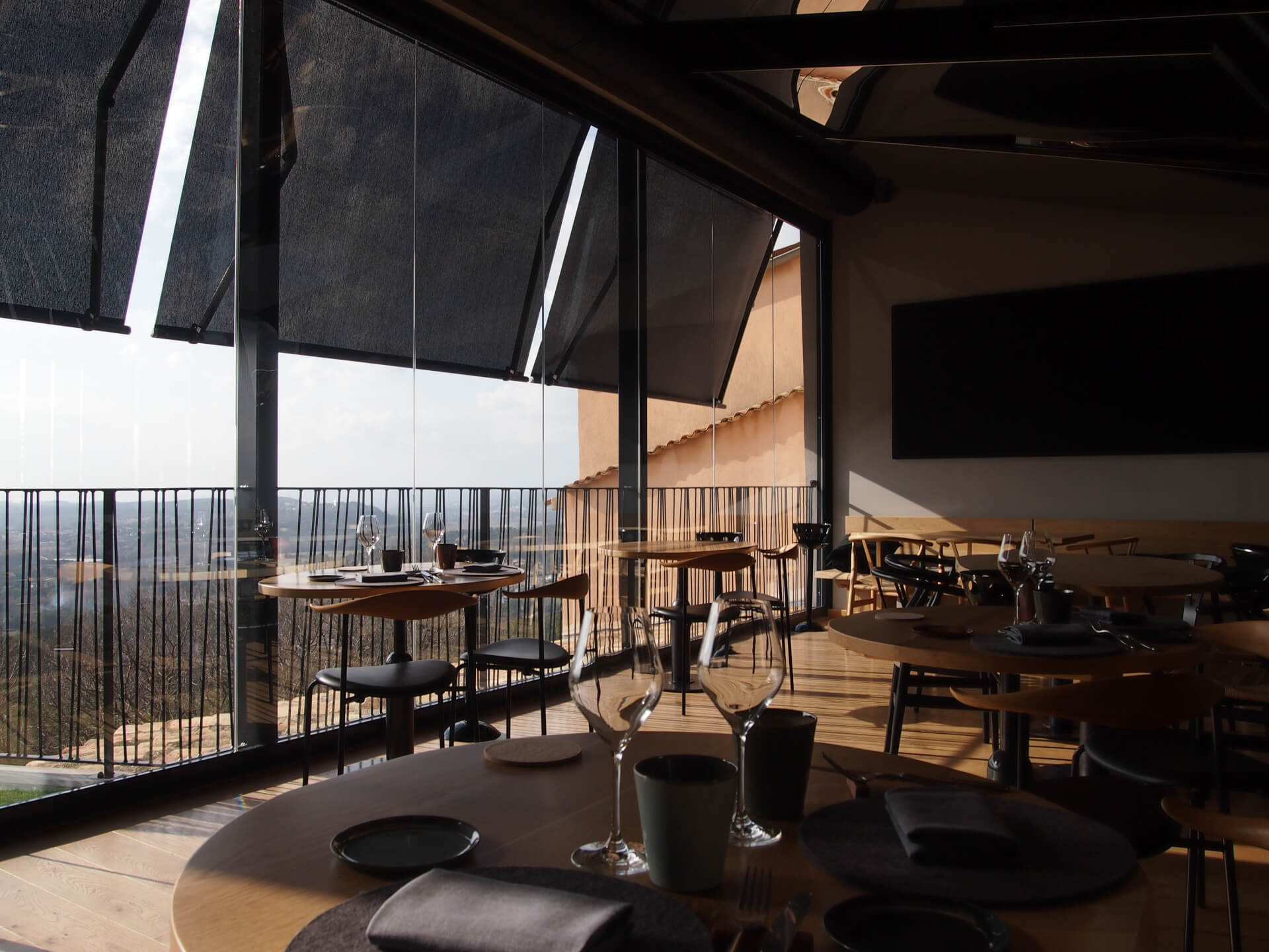 En 2014, le besoin de renouveau se fait sentir ! La rencontre en le Chef et le Studio Frémont concrétise ce projet un peu fou que chef a imaginé; où la cuisine, l’architecture et l’ambiance, trouvent un équilibre parfait avec l’identité de ce ravissant village provençal.